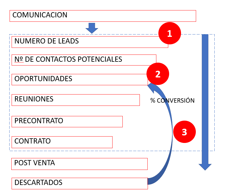 Otro aspecto a valorar es la tasa de conversión desde la entra del contacto, y el coste asignado a dicho contacto.