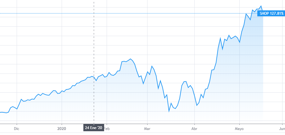 Evolución de la cotización de Shopofy +127%, últimos 6 meses.