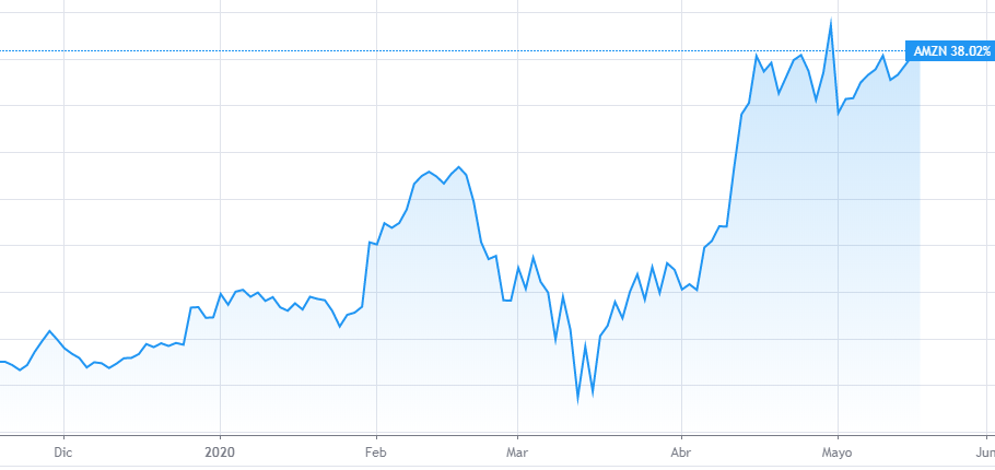 Evolución de la cotización de Amazon +38%, últimos 6 meses.